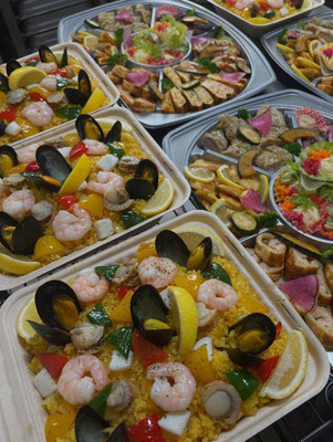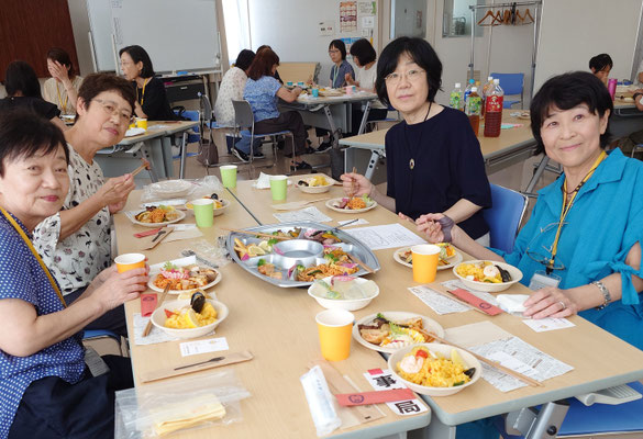 ランチ会では左の写真のような『出張シェフHARU』さんのパエリアとオードブルをいただきました。いつもの黒埼北部公民館が、素敵なレストランに早変わり!おしゃべりをしながらの、おいしくて楽しいランチ会になりました。