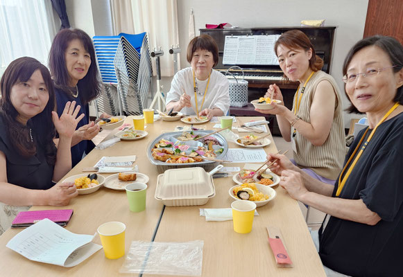 2025年度第1回提供会員連絡会を、8月24日、26名が参加して行いました。今回は、親睦会がメインです。いつもの情報交換の他に、おいしいランチを食べたり、みんなで歌ったりしました。