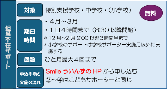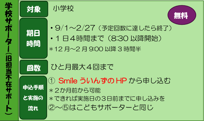 *すでに担当不在サポートとして申込み、確定している9月分のサポートは「学校サポーター」として実施します。